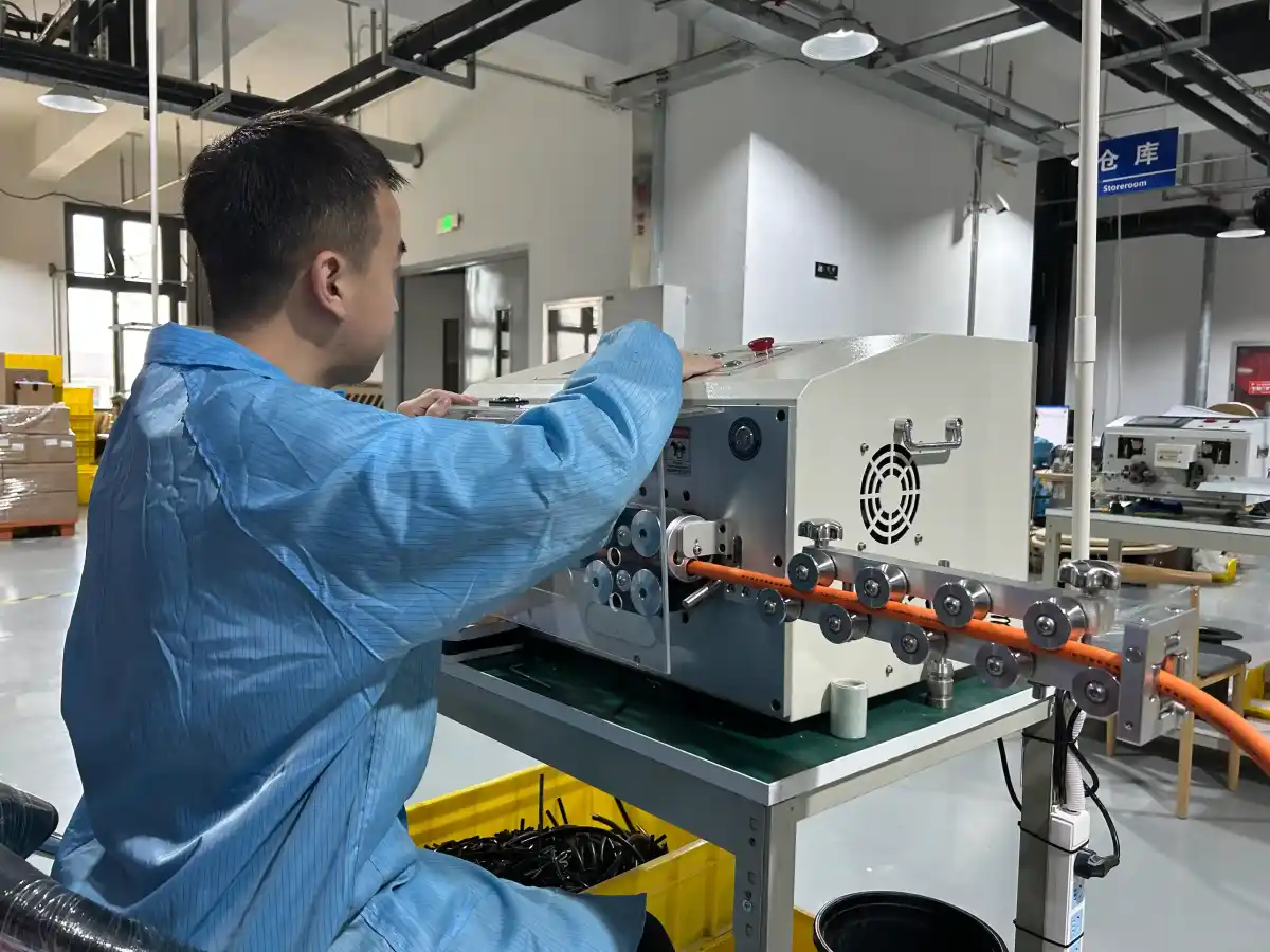 Наше производство оснащено автоматическими линиями для резки, зачистки и крымпирования проводов (Komax, Schleuniger), станциями ультразвуковой сварки, оборудованием для пайки и термоусадки. Все жгуты проходят 100% электрическое тестирование на специализированных стендах.